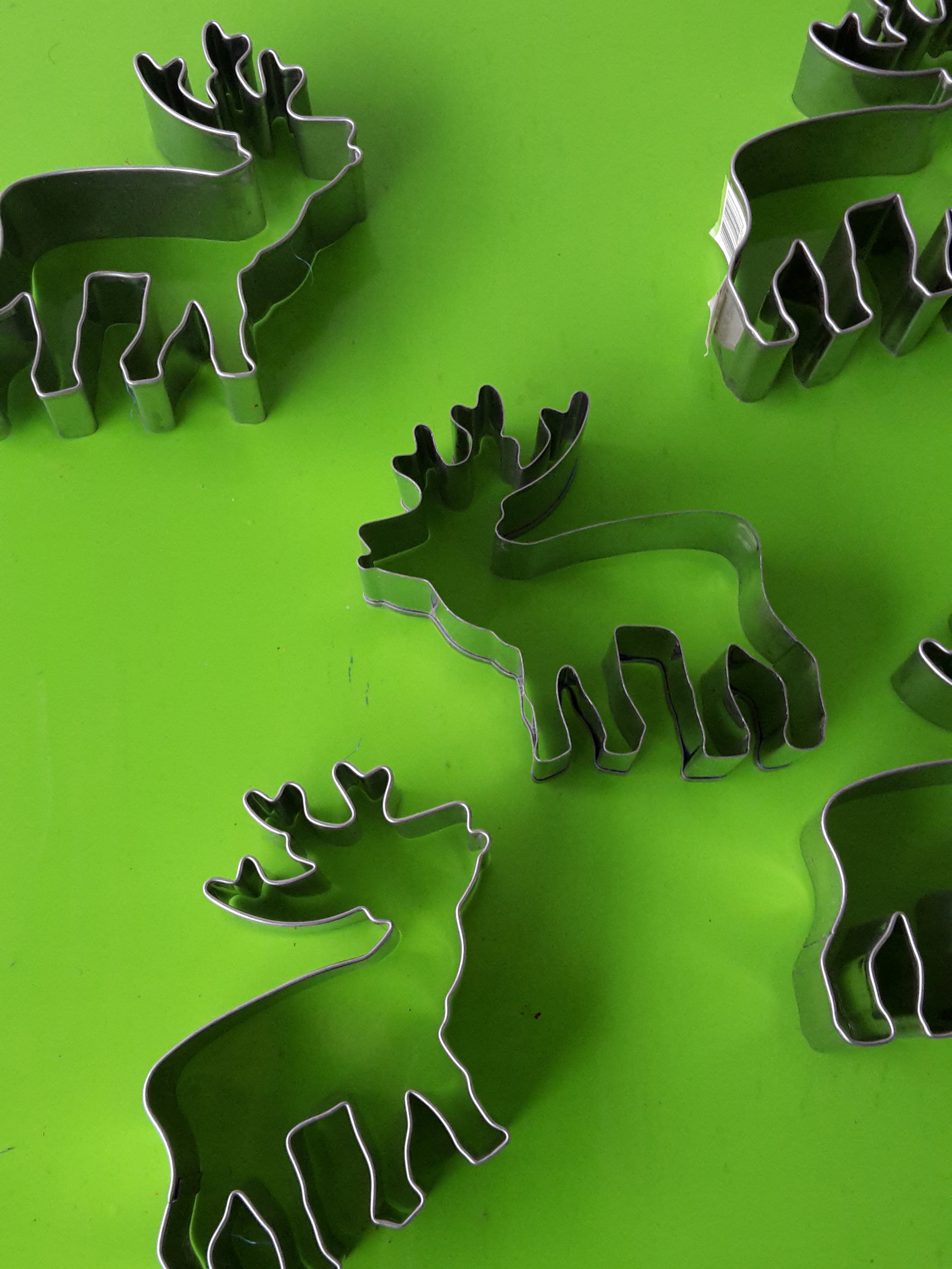 Ausstechform zum Backen von Guetzli in Hirschform. Die Form hält sich gut in der Verarbeitung mit Mailänderli- oder Brunsliteig. Der Preis ist pro Stück.