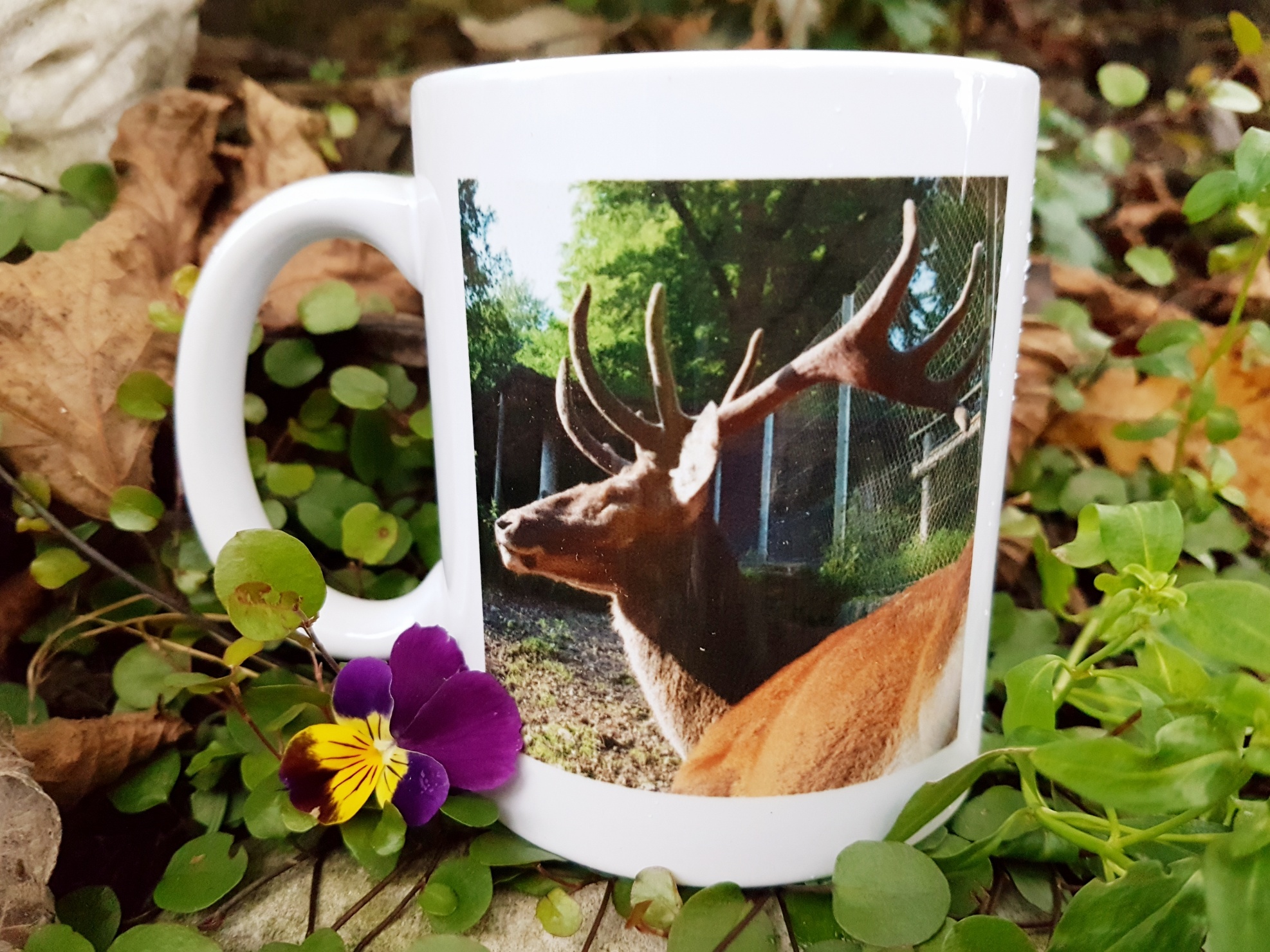 Weisse Henkel-Tasse mit Hirschmotiv, 2.5 dl, Platzhirsch